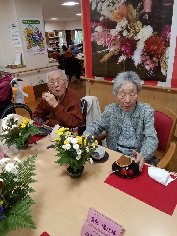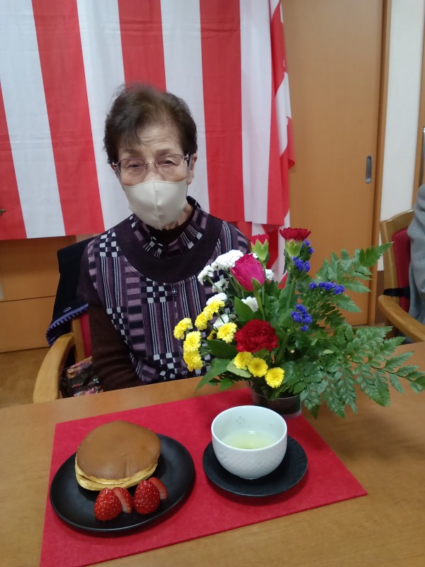 苺とどら焼きが映える、フラワーアレンジメント!!