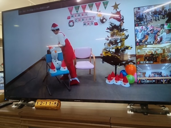 リモートで他の施設の方々と一緒にクリスマスソングに合わせて身体を動かしました