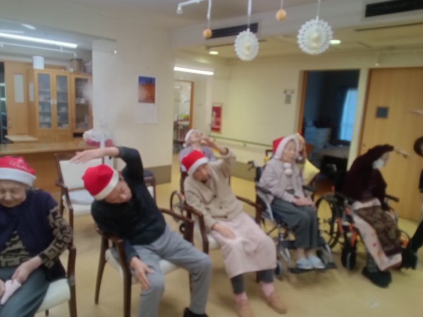 日課の体操 今日はリモートでいきいきクリスマスですよ
