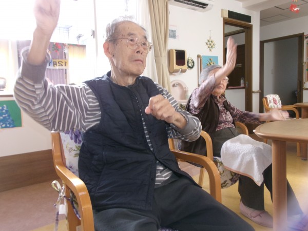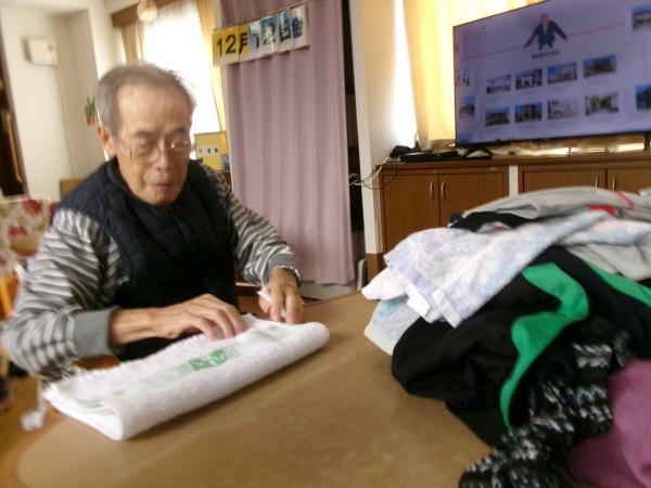 洗濯物たたみ、体操、お食事のご様子です。