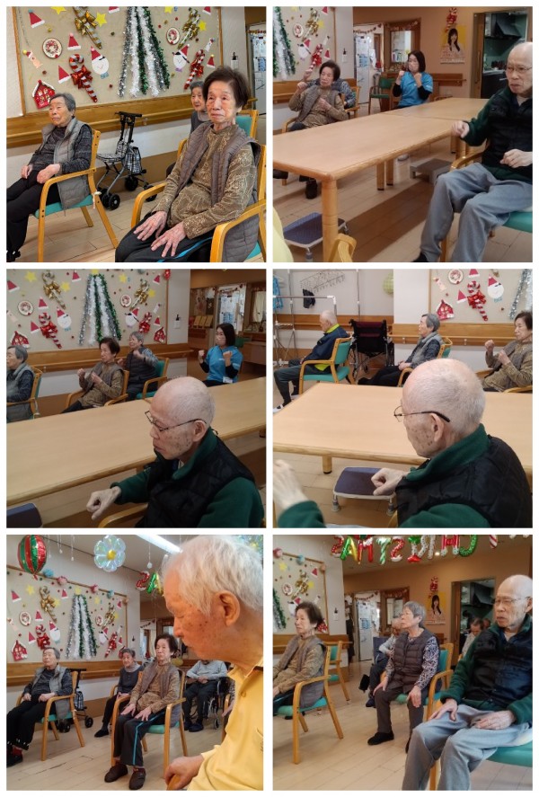 クリスマスムードな背景の中楽しく体操され今日も1日元気に過ごせますように୧(˃◡˂)୨୧(˃◡˂)୨