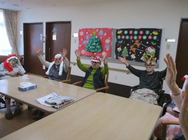 皆様にもクリスマスらしく、サンタさんの帽子やトナカイの帽子をつけていただき体操を行いました(*^-^*)