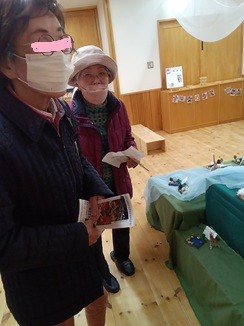 土や葉など身近な物を使っての作品、いらなくなったティッシュ箱を使ったり、短くなった鉛筆に羽をつけて飛行機を作ったり・・、沢山の作品がありました。