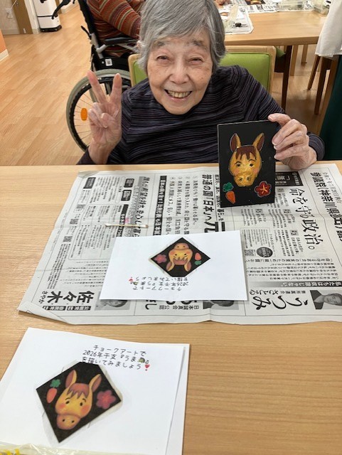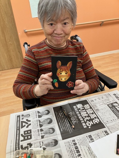 来年の干支、可愛い馬を夢中になって塗ってらっしゃいました。