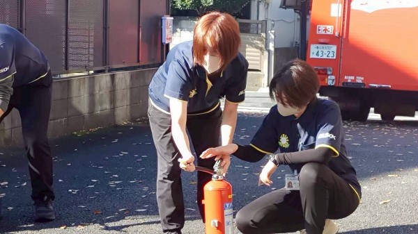 消火器の扱いを学びます。