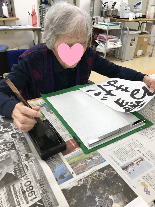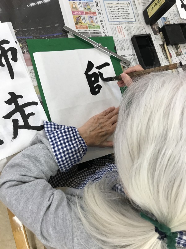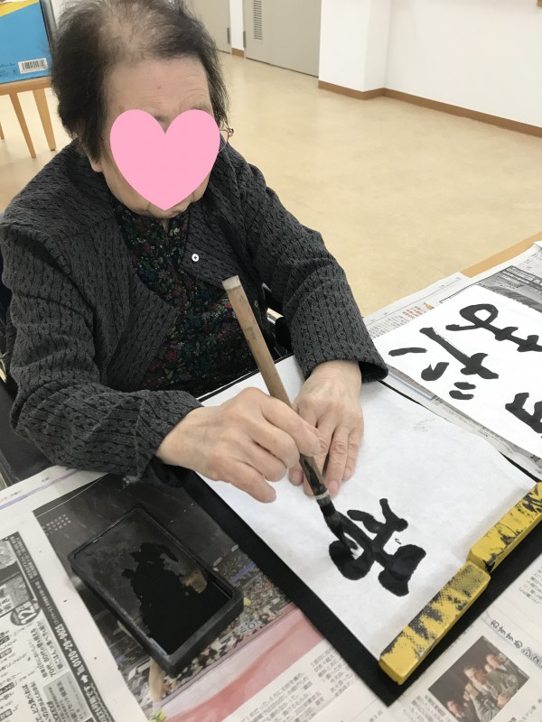 今月もまた書道をみんなで行いました。