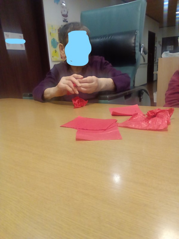 日々のレクリエーションもさまざまと行っていますが、来年の干支カレンダーの下地作りをお願いしている様子を紹介します