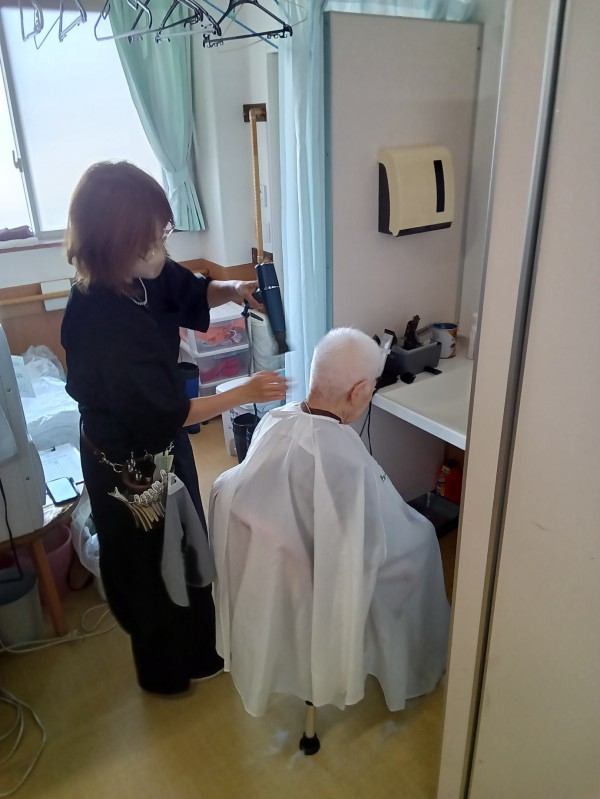 本日は訪問理美容の日となっておりまして、希望者の方がヘアーカットをされております。