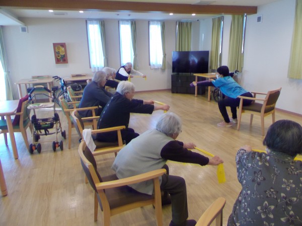 いつも通り、チューブを使った運動。