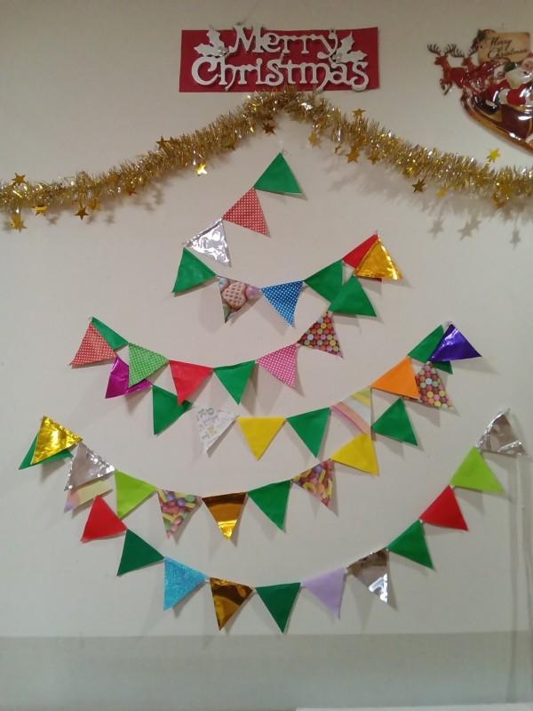 こんにちは GHみんなの家川崎新百合ヶ丘です もうすぐクリスマスですね! 町が華やいでいます  1階の皆さんとクリスマスツリーをつくりましたよ!!