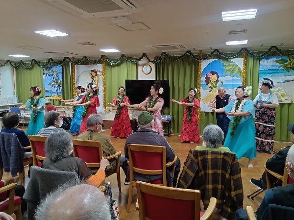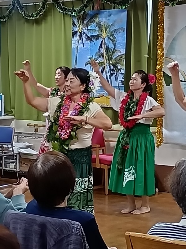 上階の「すこや家・東浦和」の元職員さんが、フラダンスチームを率いて来てくださいました(*^▽^*)