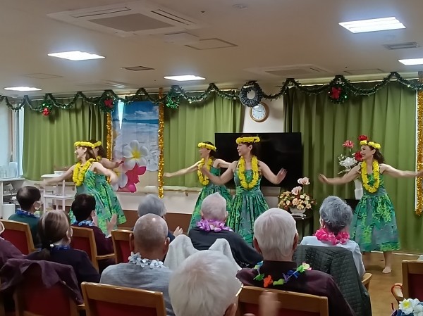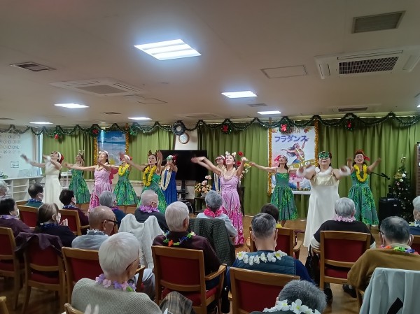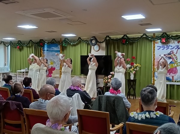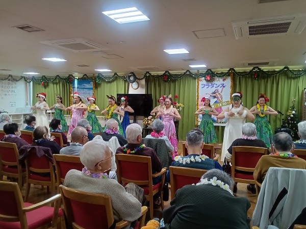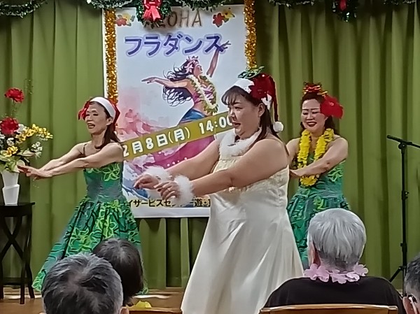 6曲程の音楽に合わせてのフラダンスに、クリスマスメドレーに合わせて踊りを拝見しました!