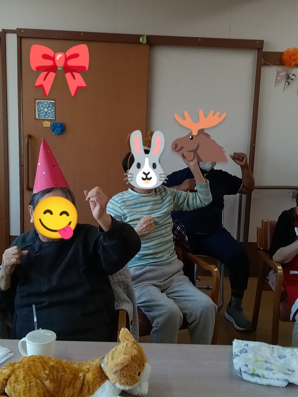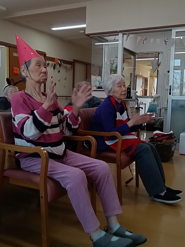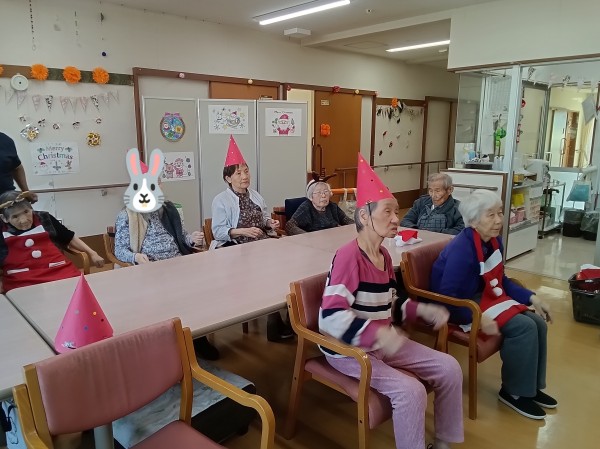 スタッフブログをご覧くださりありがとうございます。今回は12月のリモート体操クリスマスをご紹介させていただきます。ご入居者様の真剣な眼差しをご覧ください!クリスマスなので鹿さん、サンタクロース、三角帽子など。。。可愛い(≧▽≦)❤ですね(^O^)/