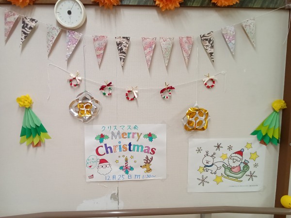もう少しで歳の瀬でもその前にXmasのイベントがありスタッフも色々と悩んだり試行錯誤しながら飾り付けや何をプレゼント?とか、ない頭をひねりまくっていました( *´艸`)手作りのリースも1人のスタッフがコツコツと暇を見つけては作成していました。それもご入居者様の笑顔を見たいからと。。。泣けます( *´艸`)( ノД`)シクシク…頭が下がります。