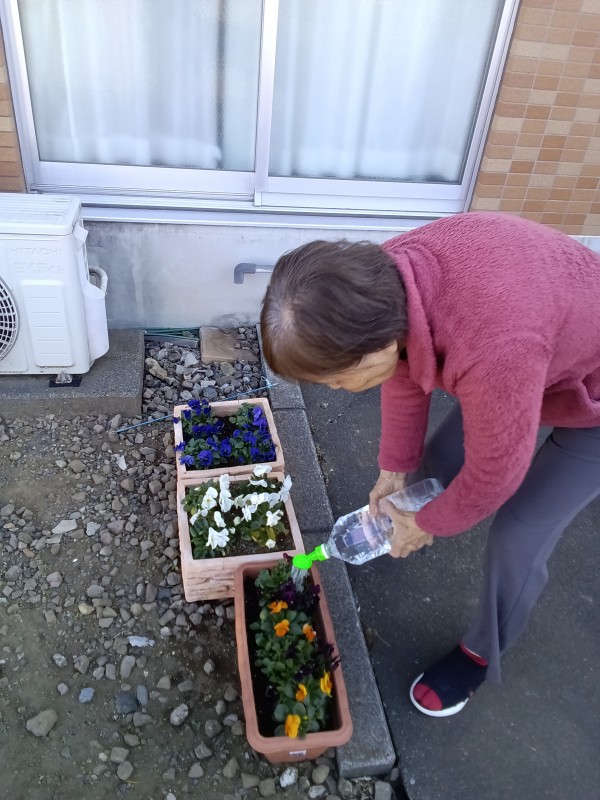 花壇のお花に水をあげる様子の報告です(#^.^#)