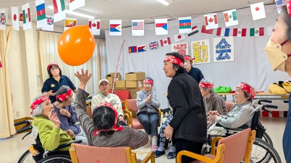 いきおいよく投げるご利用者様達と落ちた球を拾いまくるスタッフ