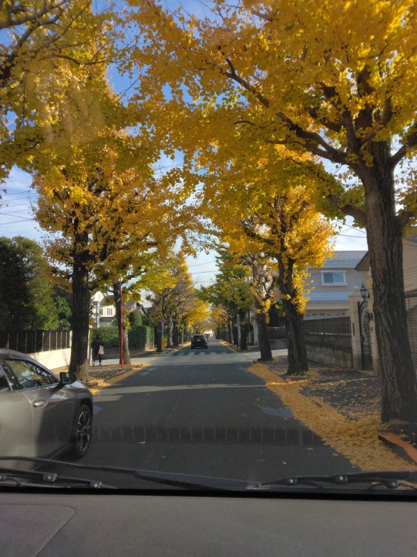 少し傾斜した道路なので、とても見通しが良く、銀杏の黄色の葉っぱが光り輝いています!