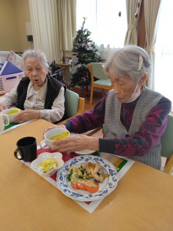 「今日は豪華ね」「クリスマスを味わえて嬉しいわ」と皆さんの喜ぶ声と笑顔は最高でした!