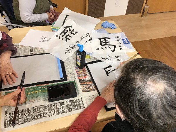 書道の時間で「熊」と「米」「馬」など書きました♪