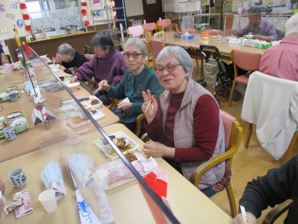 美味しいお弁当を囲みながら、自然と会話も弾み、笑顔あふれる昼食時間となりました。これからも、食べることの楽しみや大切さを感じていただける時間を大事にしながら、皆様に喜んでいただける【お弁当の日】を続けていきたいと思います♪