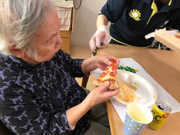 皆さん美味しそうにピザを召し上がっています。