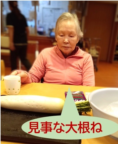先日、2階のケアマネジャーとご入居者様で冬の味覚である立派な大根を使って