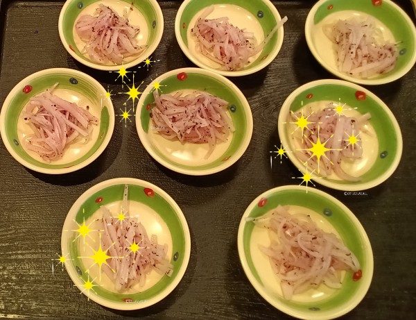 最後にふりかけの「ゆかり」をかけて「大根の甘酢漬け・ゆかり風味」完成♪