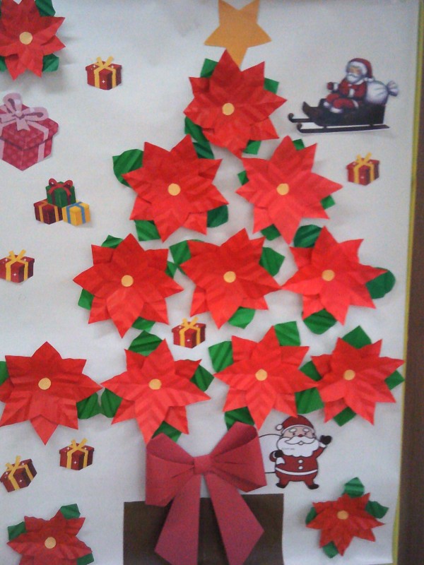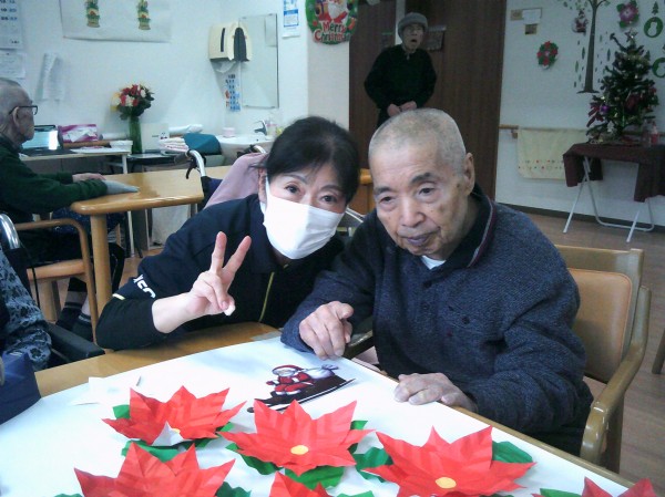 ポインセチアの貼り絵を行っているご様子です( ^ω^)・・・ 凄いね~! 大きなお花で綺麗ね! とビックリでした。