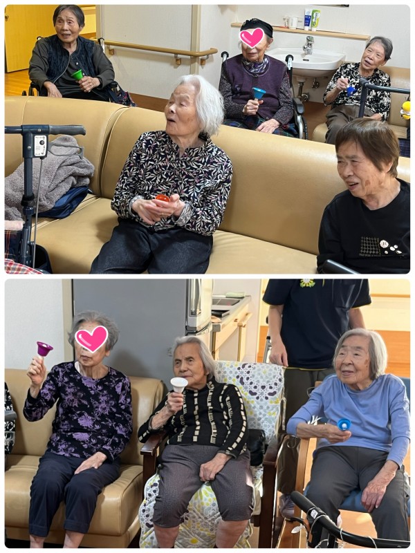 みんなで大合唱をしながらハンドベルを奏でるのです