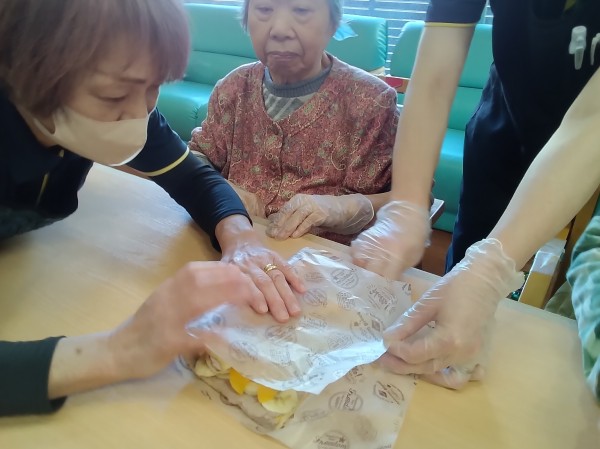 果物を切ったり、クリームを塗るはいつもの事なので、みなさん手際よく進んでいきました・・・