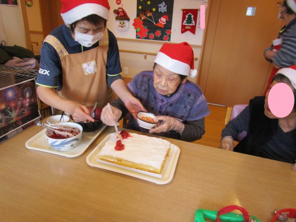 ご利用者様もスタッフもサンタ帽子をかぶりました。