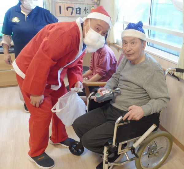 !(^^)! 職員サンタよりお1人ずつにクリスマスプレゼントを手渡ししました。(^_-)-☆