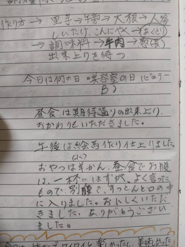 そうなんです。ここでは切っていただいた野菜などを思い出しながらノートに記入していただくのです(´▽`*)