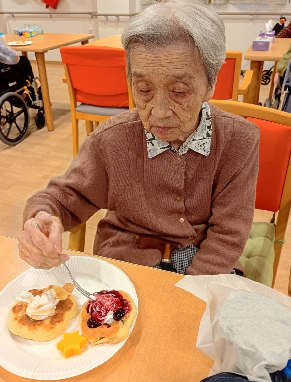 ホイップとチョコ、ブルーベリーソース、黒蜜、メイプルの中からお選びいただきました。