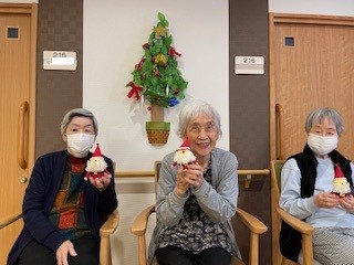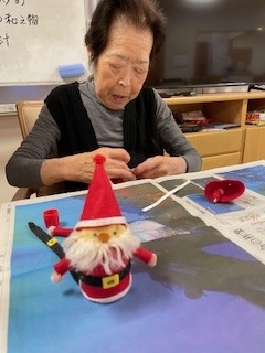 それぞれご自分で作ったサンタさんを手にしてうれしそうです、お疲れさまでした。