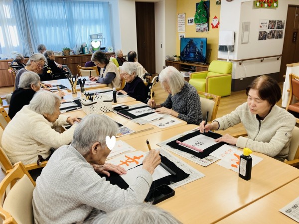 普段は、体を動かすレクが多かったりもしますが、この日は習字レクを皆さんで開催しましたよ~!文字の大きさなど、皆さんそれぞれ性格が出ますね~!