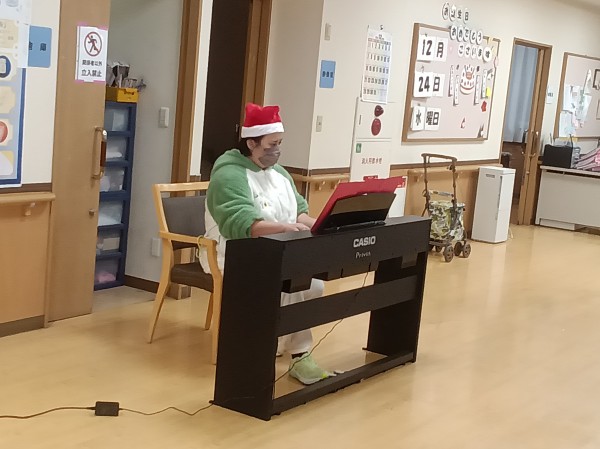 ご利用者様は職員の演奏に合わせ、歌をうたってくださり、とても賑やかでした♪