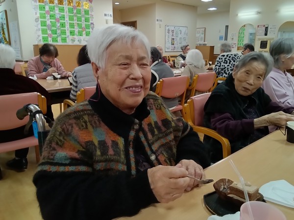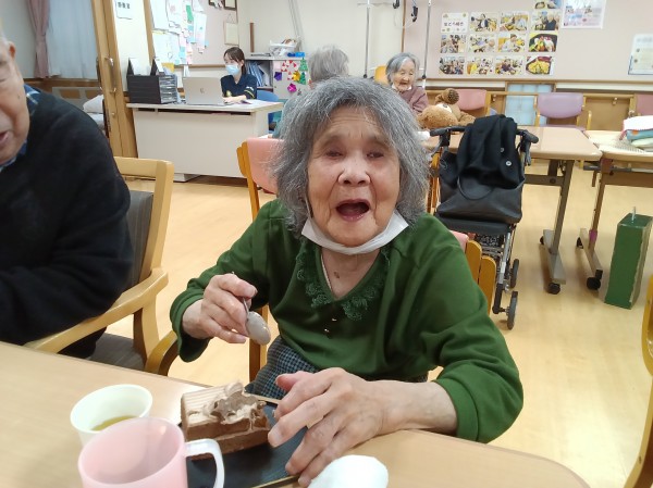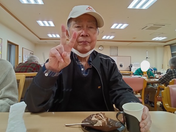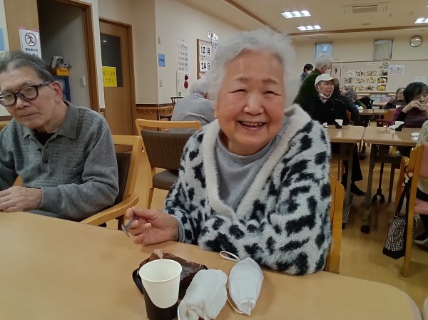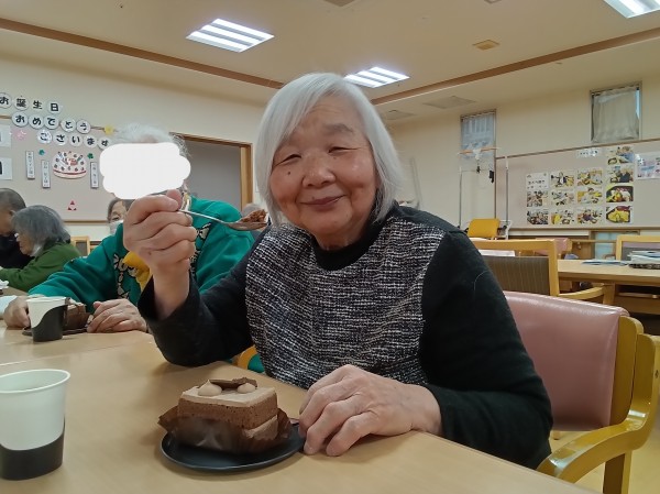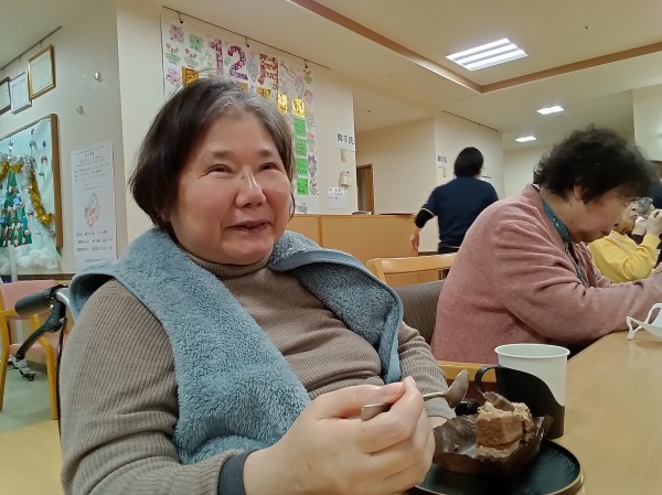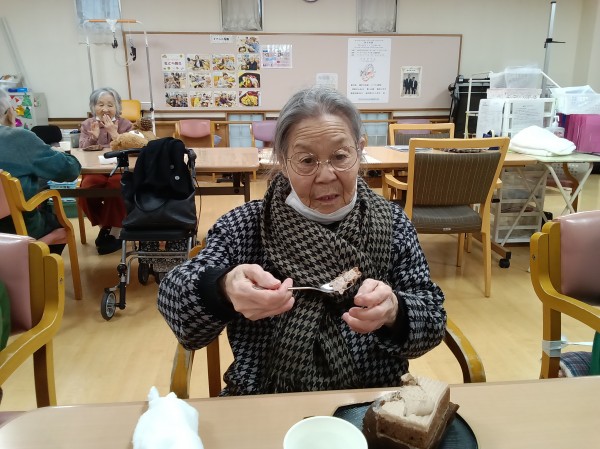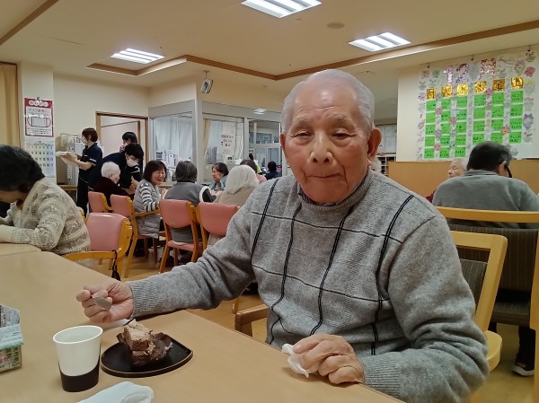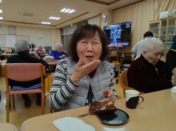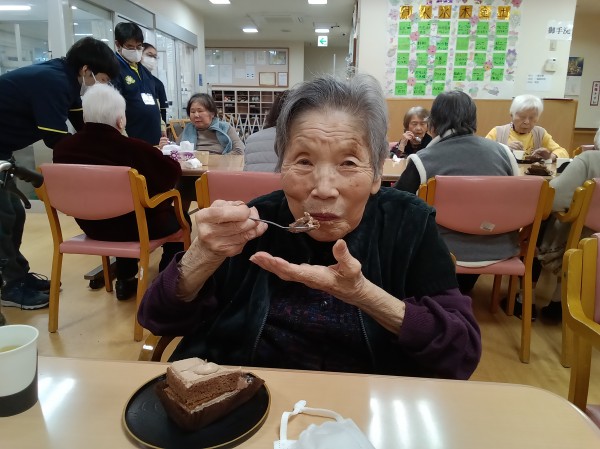 旨いもの会では、クリスマス会にちなみ、チョコレートケーキを