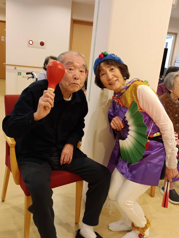 また、クリスマス会では、舞扇様(ボランティア)による素敵な演出を加えた民謡や舞踊、