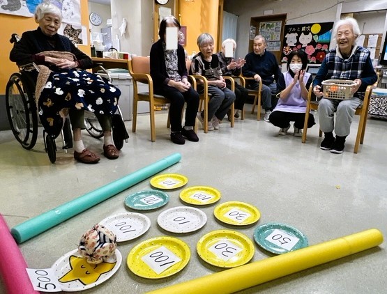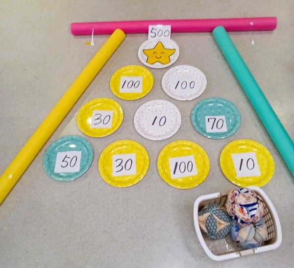 ボールを投げて入ったお皿の得点をgetできる遊び!