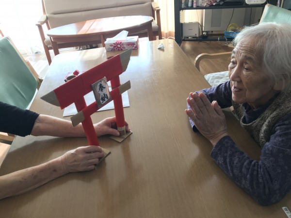 鳥居やお賽銭箱まで!本格的な初詣ができそうな仕上げです。ご家族の皆様、ご訪問の際には是非作品をご覧になってください。