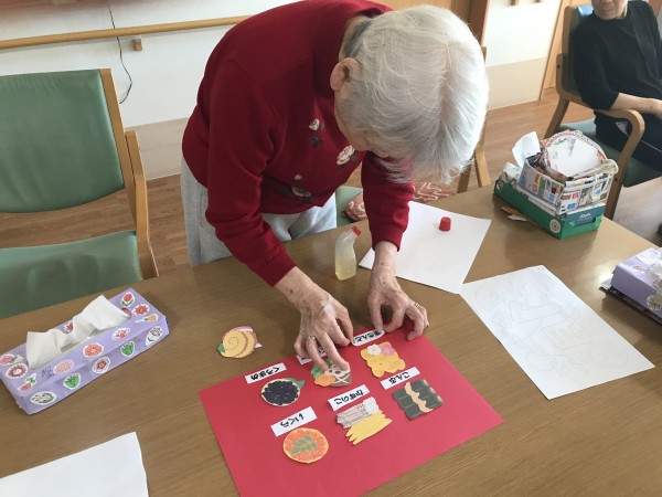 皆で意見を出し合って、富士山はここ!羽子板はここ!ダルマは並べるとかわいい~♪などと