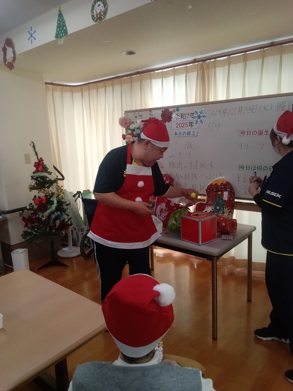 ビンゴゲーム、スタートです。箱の中に数字が書いてあるボールをとっていきます。