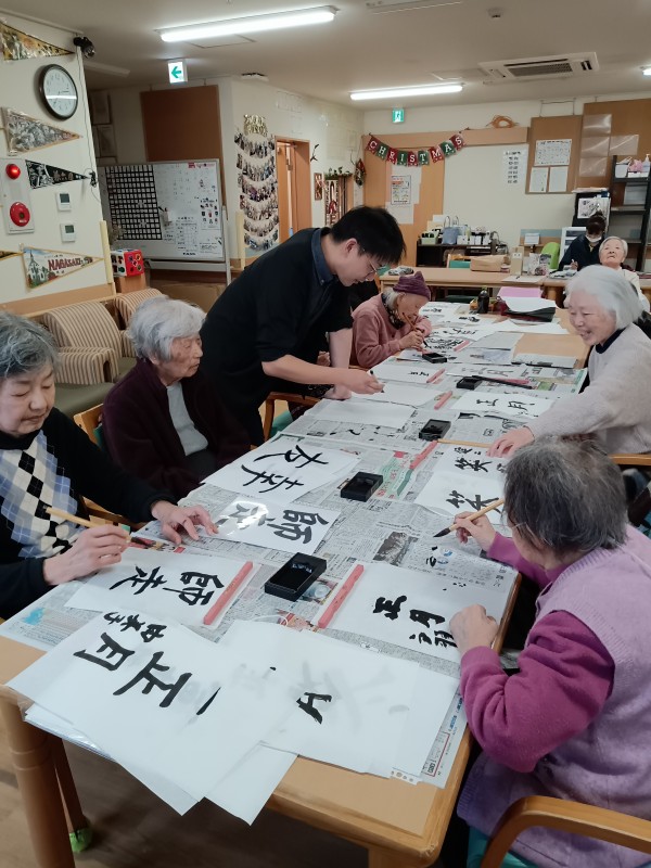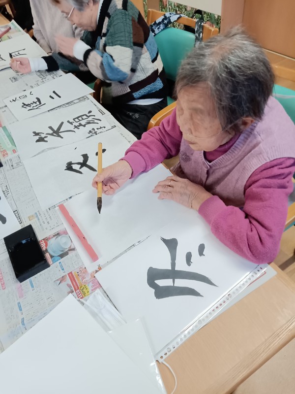 今日のレクリエーションは習字をしてみました。