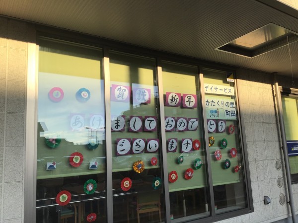 かたくりの窓に大きく新年のご挨拶を飾るみたいです