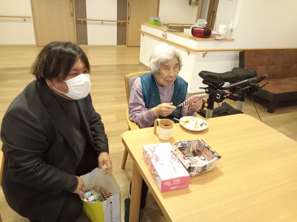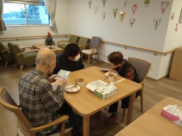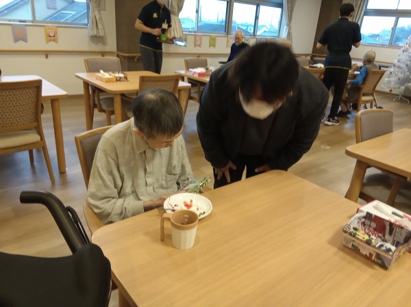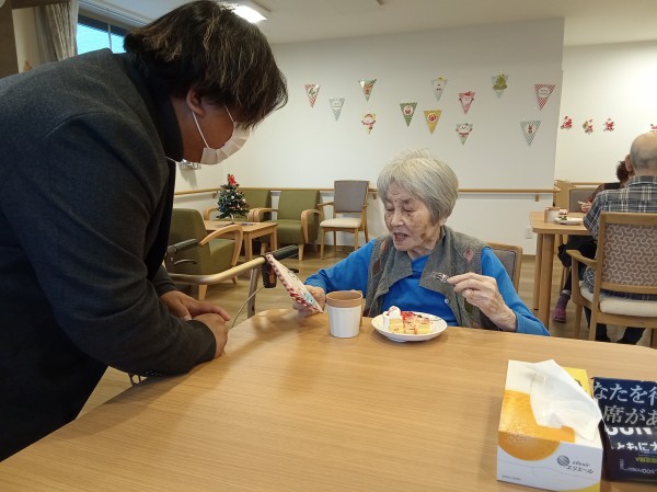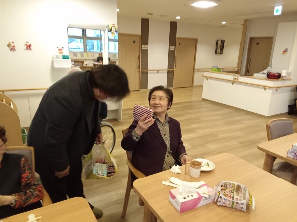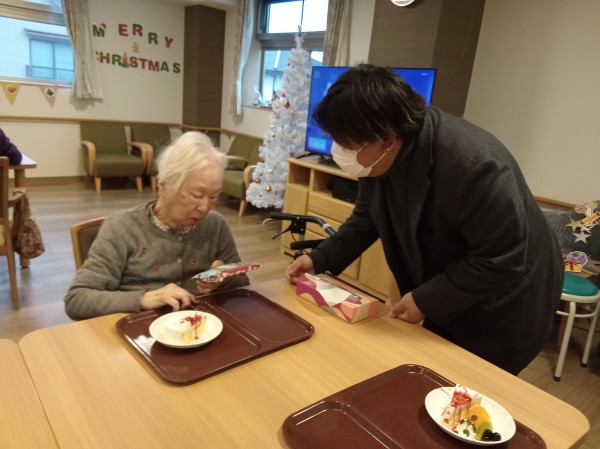 施設長サンタから入居者様にミニタオルのプレゼント♪