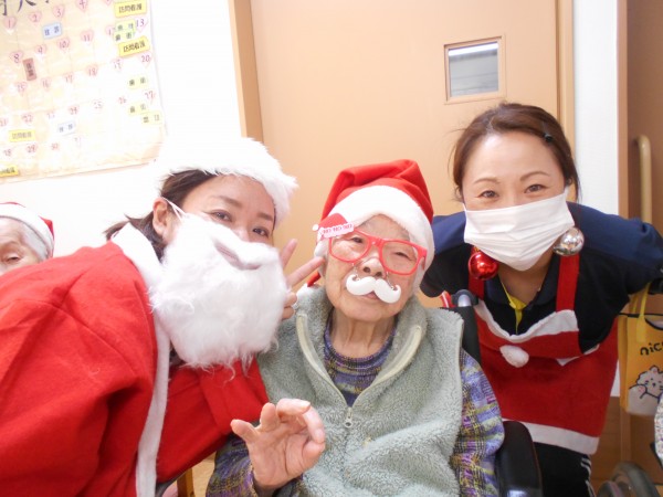 ご利用者様にも、声をかけさせていただき、クリスマスの白いひげがついた眼鏡をかけ写真を撮らせていただきました~