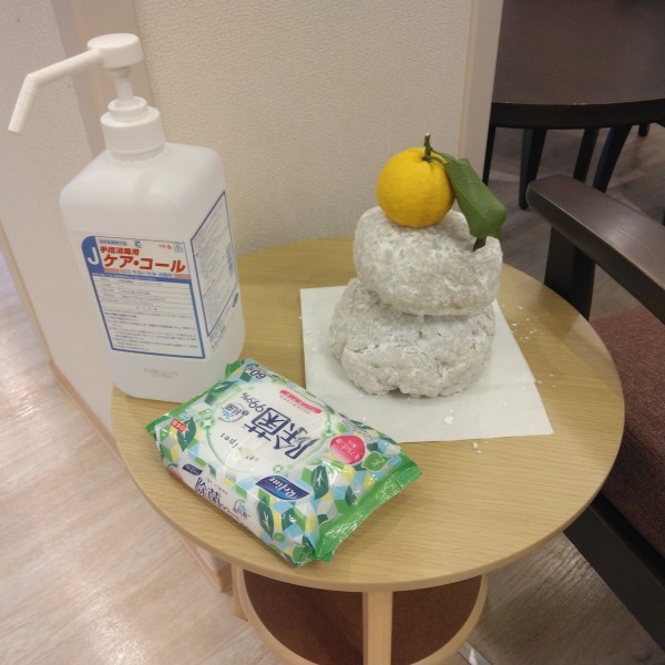 各階のリビング、お食事前の消毒をする所に飾ってあります