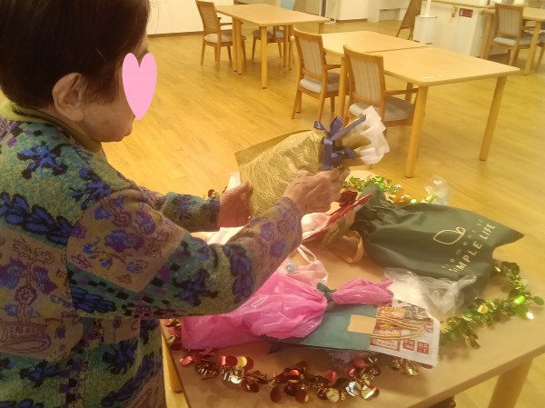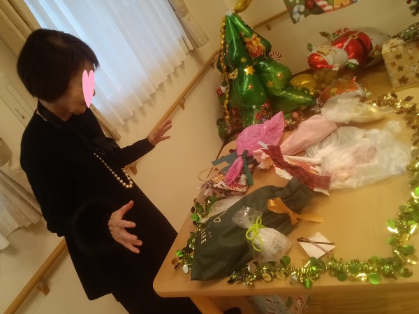 ご利用者様「あのね、今度クリスマスパーティーするのよ。プレゼント用意して交換しようと思って。楽しみなのよ~」