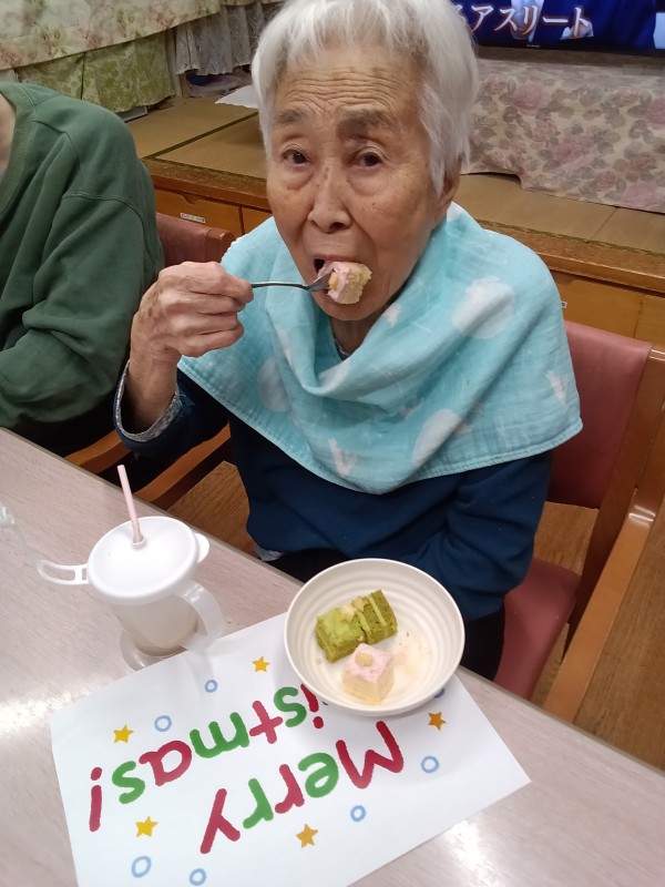 クリスマス風のおいしいケーキも召しあがっていただきました。